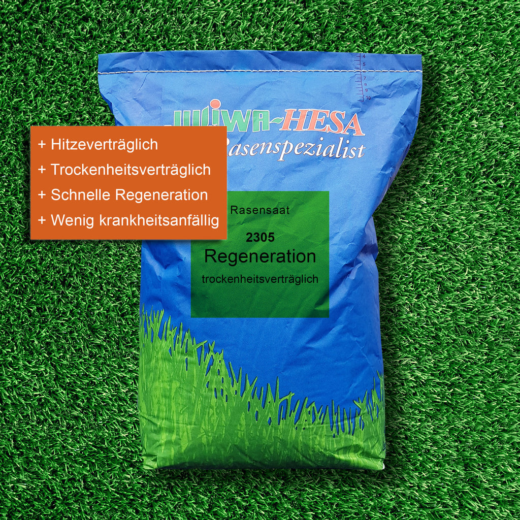 Kein Rasen hält über längere Zeit Trockenheit und Hitze aus. Dennoch werden Rasenflächen in Zeiten des Klimawandels zunehmend mit länger andauernden Trockenperioden konfrontiert. Die Saaten dieser Mischung besitzten nicht nur eine gute Widerstandsfähigkeit gegen Austrocknung, sondern auch eine besonders gute Regenerationsfähigkeit nach Stressperioden. Diese spezielle Rasenmischung für Sportrasen und belastete Hausgärten ist sowohl zur Neuansaat als auch zur Nachsaat geeignet.