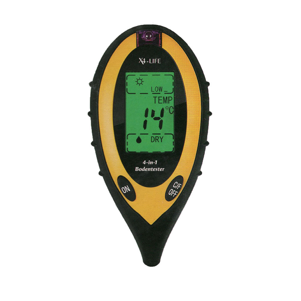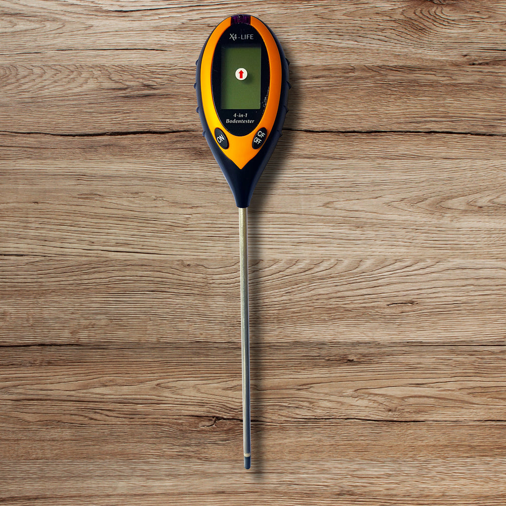 Mit dem digitalen Bodenmessgerät ermitteln Sie schnell und bequem pH-Wert, Feuchtigkeit und Temperatur des Bodens sowie die Lichtintensität des Standorts.