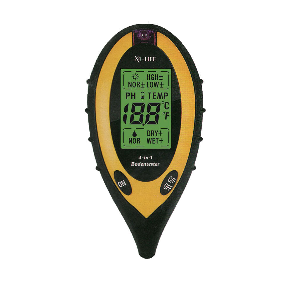 Mit dem digitalen Bodenmessgerät ermitteln Sie schnell und bequem pH-Wert, Feuchtigkeit und Temperatur des Bodens sowie die Lichtintensität des Standorts.